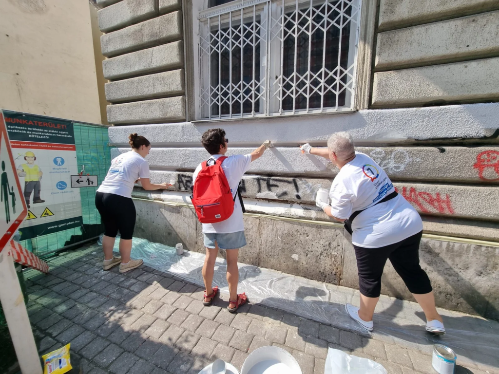 A házak falain éktelenkedő graffitik eltávolítása komoly kihívás, de nem lehetetlen! Egy lelkes és elszánt csapat vidám hangulatban, közösen tisztította meg a felületeket, visszaadva a tisztaságot az utcának.